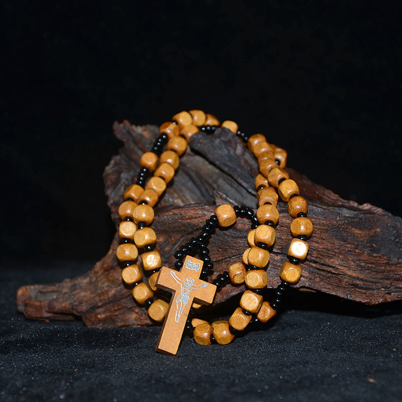 Wooden Rosary Necklace withEngraved Jesus Medal